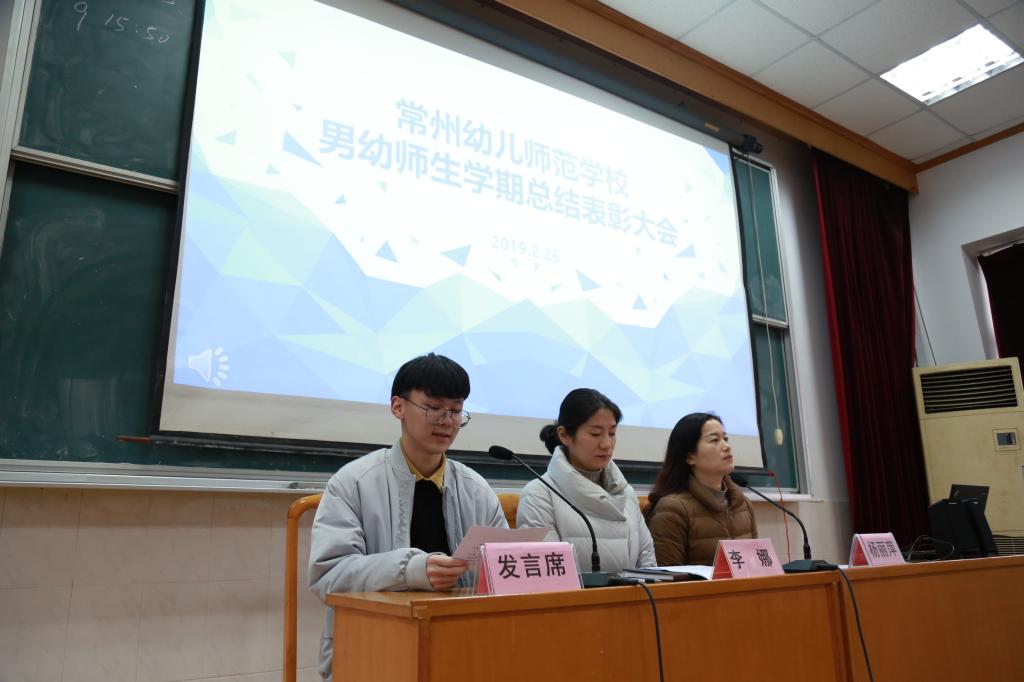 2月26日,师范教育专业部在校演播厅召开男幼师生学期总结表彰大会,本次大会由师范教育专业部李娜主任主持,杨丽萍副校长以及全体男幼师生出席。