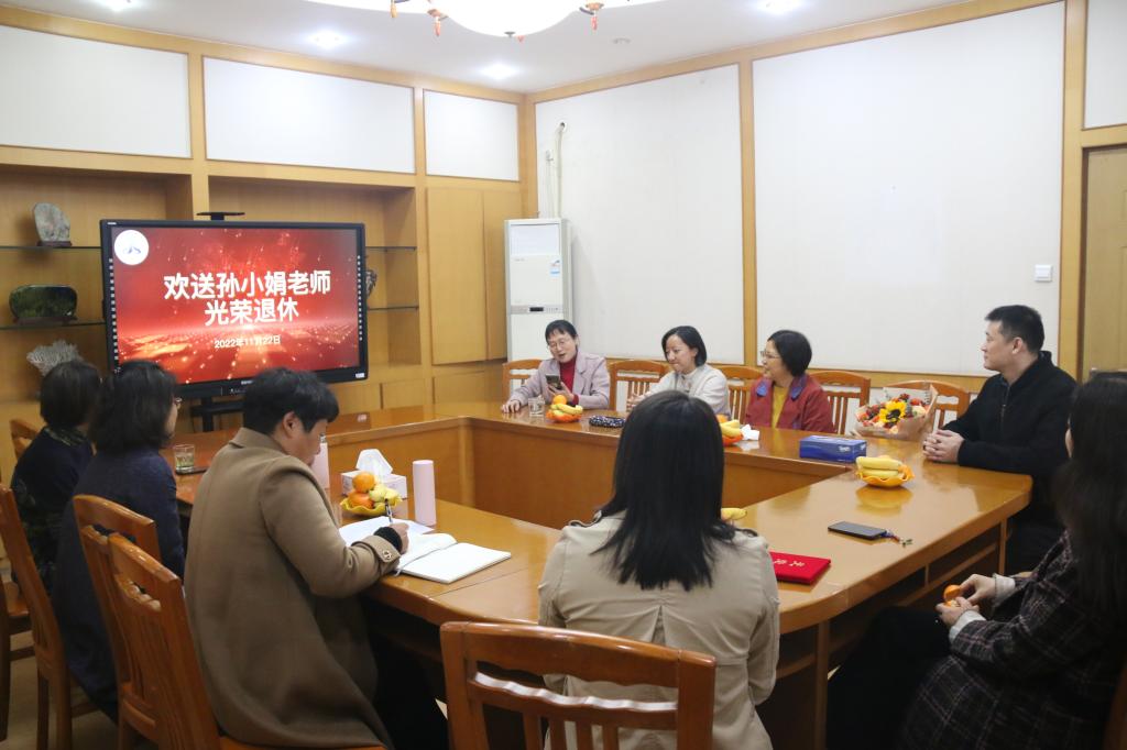 首先,魏霞副校长介绍孙小娟老师的工作经历,大家一起回忆起与孙小娟老师共同相处的工作点滴,共同认为孙小娟老师待人真诚、善于学习、工作认真负责,言语中表达了对她的留恋之心。祝福孙小娟老师退休生活健康、快乐、幸福。