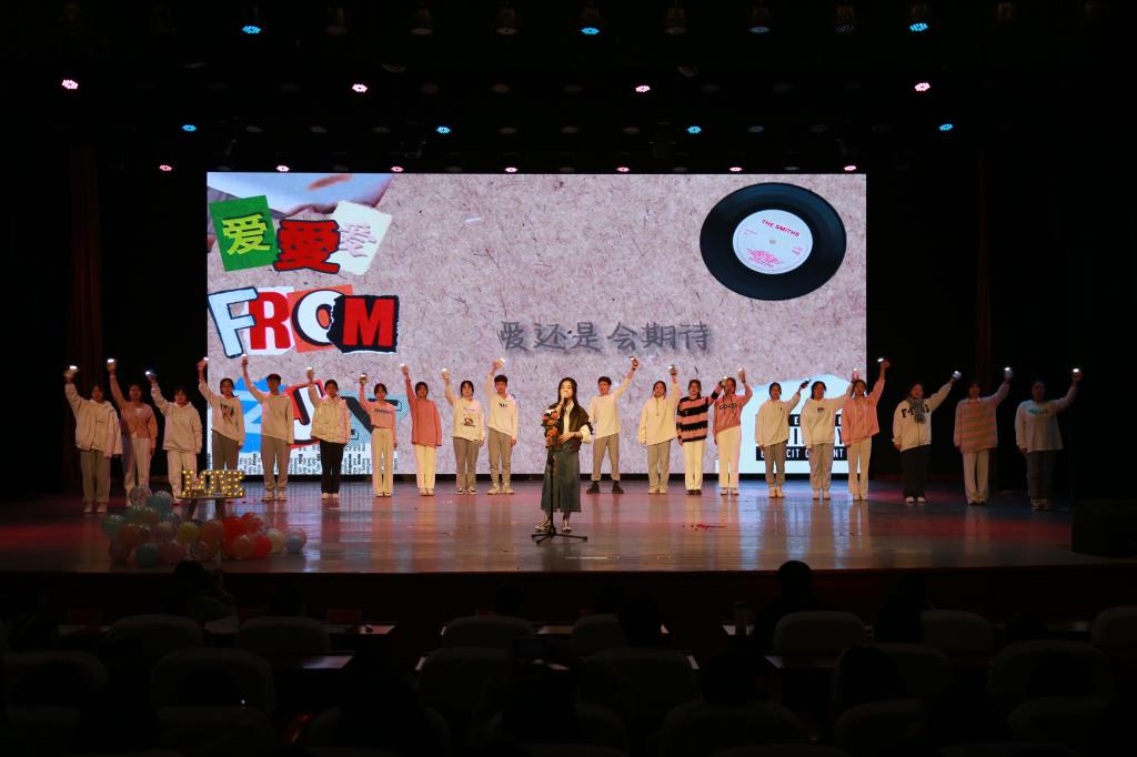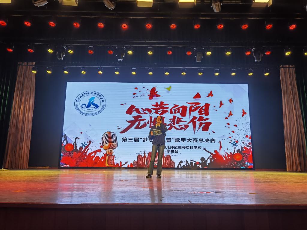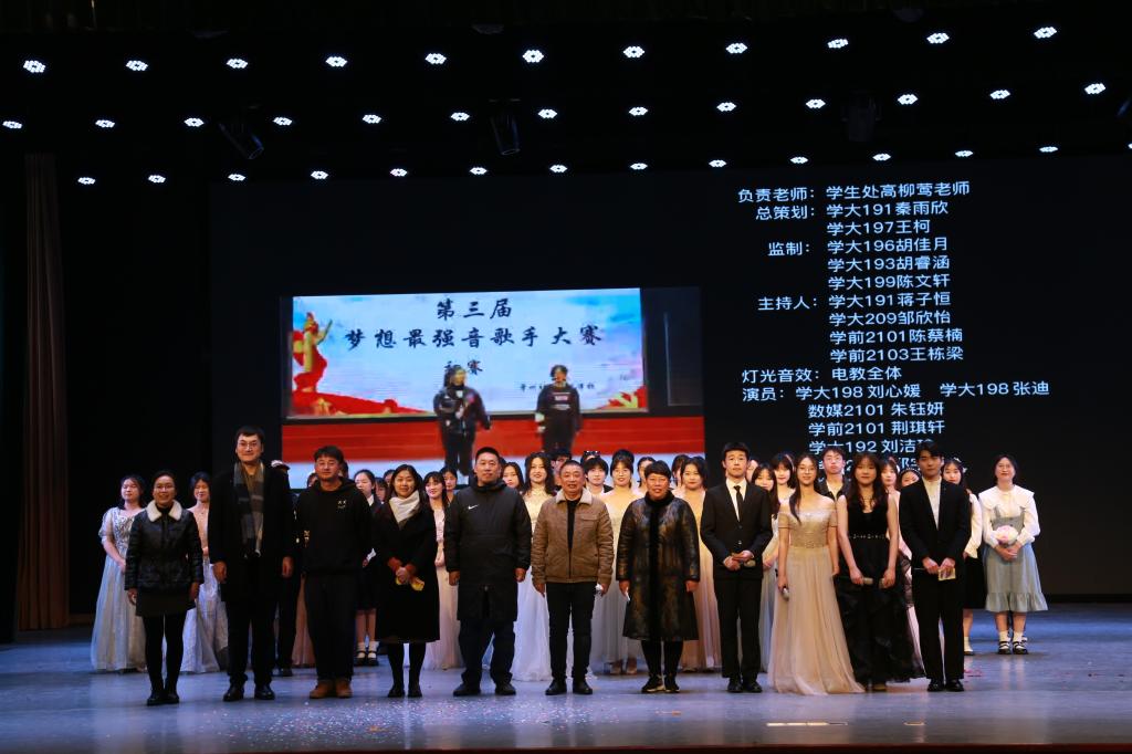 12月8日晚,学生会举办的第三届“梦想最强音”校园歌手大赛“心若向阳 不惧悲伤”展演在仁艺楼演播厅顺利举行。本次活动由电教组全程直播,出席的嘉宾和评委老师有魏霞副校长、学生处高柳莺老师、王伯春老师、孙鹏举老师、张展瑞老师、赵璐老师和倪磊老师,全体21级学生共同观摩了演出。