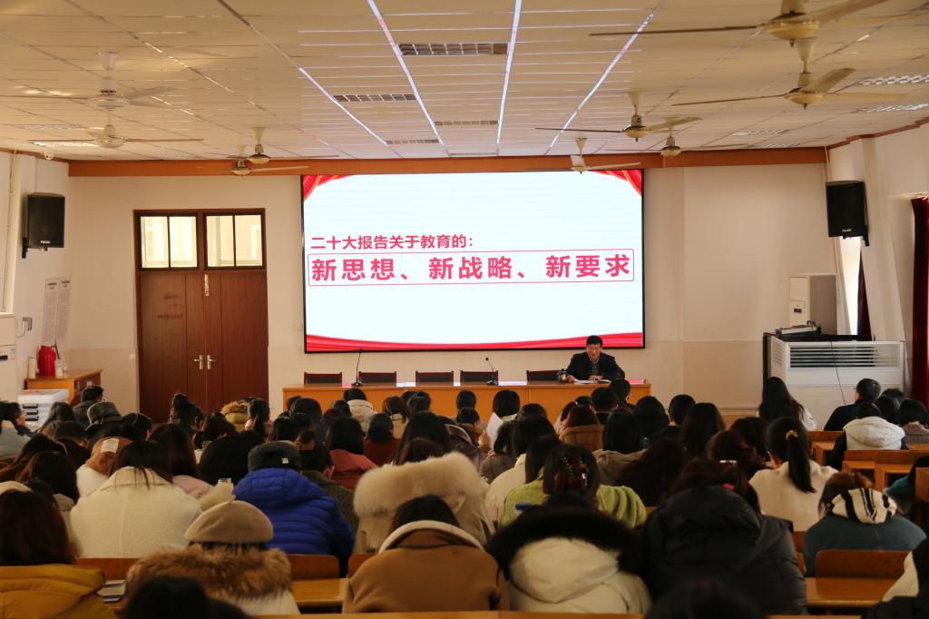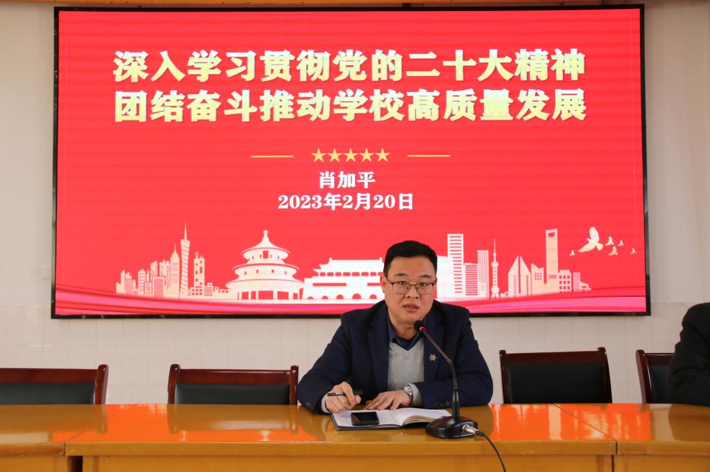 为深入学习宣传贯彻党的二十大精神,全面推进学校高质量发展,2月20日下午,校党委书记、校长肖加平同志以《深入学习贯彻党的二十大精神,团结奋斗推动学校高质量发展》为题为全体教职工开设了学习党的二十大精神专题党课。学校党委副书记、副校长许昌松同志主持会议。