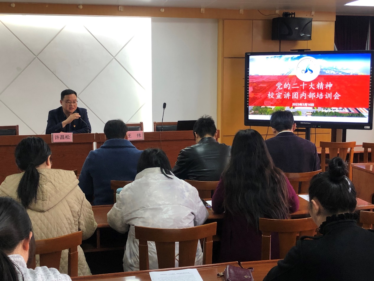 学习宣传贯彻党的二十大精神是我校当前和今后一个时期的重要政治任务。3月16日下午,党的二十大精神校师生宣讲团在仁和楼第四会议室举行内部培训会。全体师生宣讲团成员参加了此次会议,并进行集体备课。