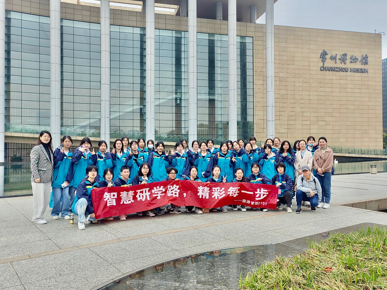 4月7日,我校旅游管理2101班全体学生在陈敏玉老师的组织以及旅游教研室潘虹组长、边小叶老师和班主任肖婧老师的协助带领下,奔赴常州博物馆开展研学旅行活动。我校旅游管理专业在智慧研学之路上又跨出精彩的一步。