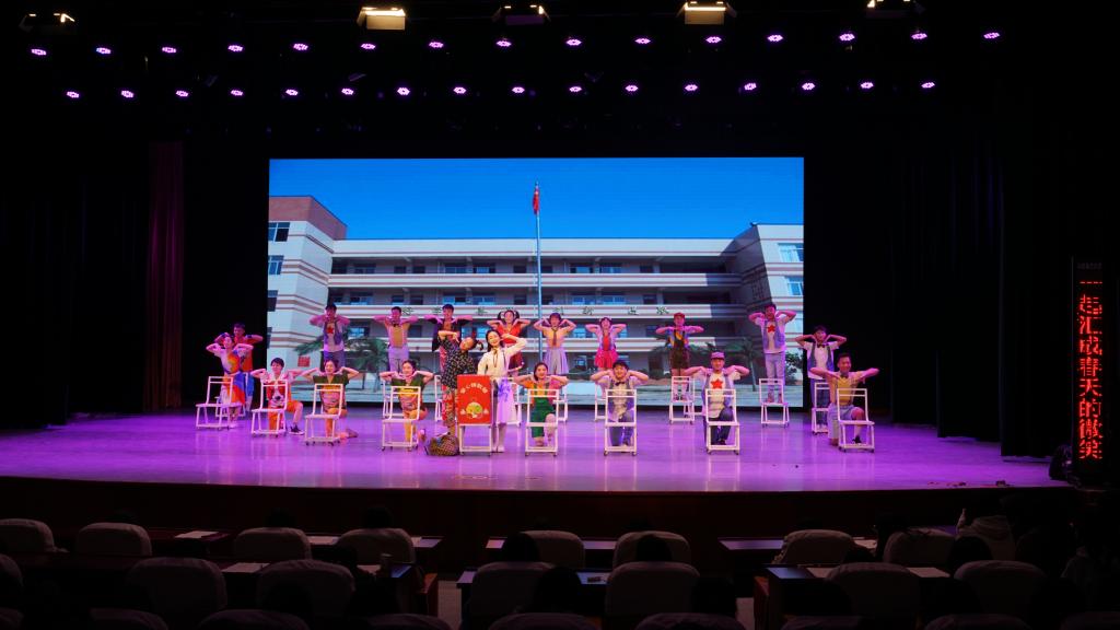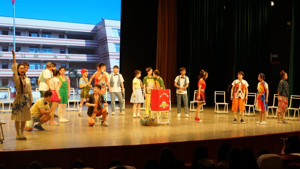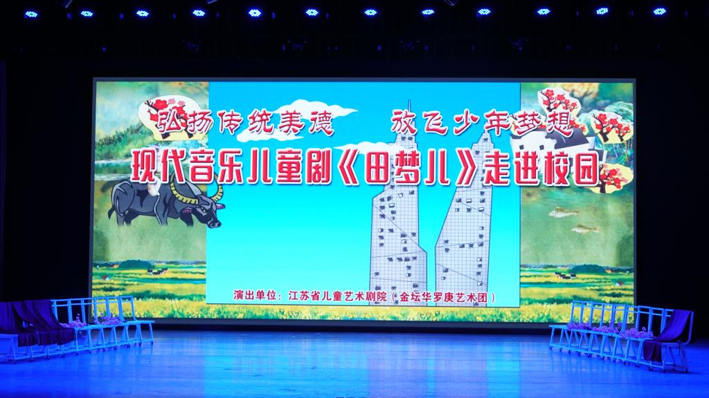 为丰富学生课余生活,促进学生身心健康发展,营造和谐的校园氛围,学校组织21级五年制学生和22级三年制学生于4月24日晚在仁艺楼演播厅观看大型现代音乐儿童剧《田梦儿》,演出单位是江苏省儿童艺术剧院(金坛华罗庚艺术团),学生处主任王蕾老师在开演前做主持介绍。