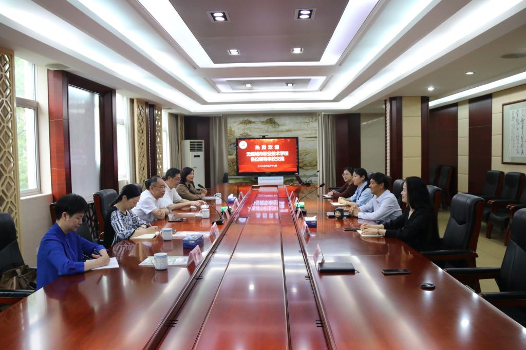 5月17日上午,无锡城市职业技术学院党委书记郁宝荣一行6人,来我校开展校际交流活动。校长肖加平、副校长杨丽萍、行政办主任张庆华、师范教育专业部主任李娜、学生处主任王蕾参加交流活动。