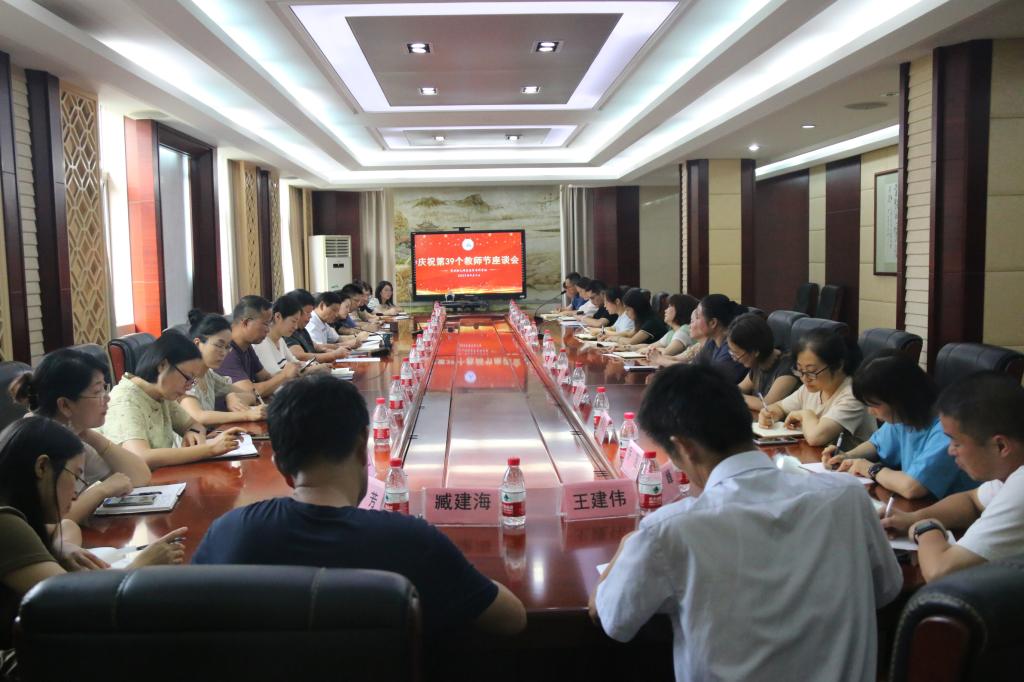 9月7日下午,我校在第二会议室举行教师代表座谈会,校领导与20名教师代表齐聚一堂,畅谈为师之道,共议发展之路,共同庆祝第39个教师节。会议由工会主席、副校长魏霞主持。