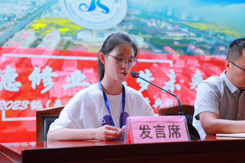 新生代表学前2302班陈艺璇建议全体同学要养成良好生活习惯,增强自理、自立能力,勇于担当,播种新希望,铸就新辉煌。