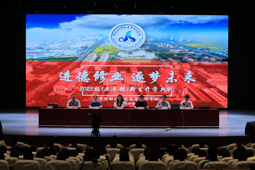 9月9日下午,2023级五年制新生开学典礼在仁艺楼演播厅顺利举行,副校长杨丽萍、李娜,教务处主任顾静、师范教育专业部副主任吴盼盼、23级年级组长徐磊老师出席典礼,典礼由学生处主任王蕾主持,全体23级班主任和五年制新生参加本次典礼。