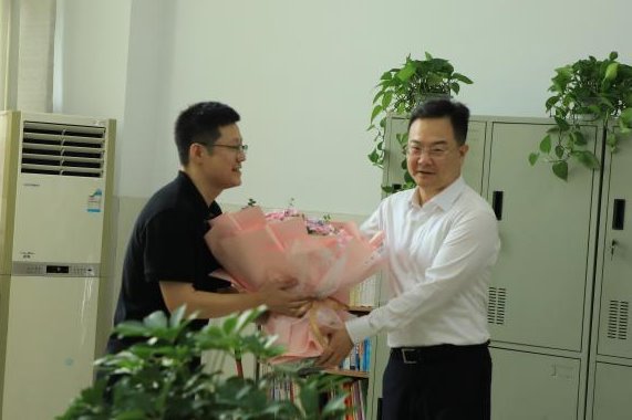 市委常委、常务副市长李林在校党委书记、校长肖加平的陪同下来到仁艺楼办公室,向我校优秀教师代表献上鲜花,对扎根在教学一线辛勤付出、无私奉献的教师们表示诚挚的问候,祝福大家身体健康、工作顺利、阖家幸福、桃李满天下。随后,肖校长代表学校接受了市委、市政府的图书捐赠。