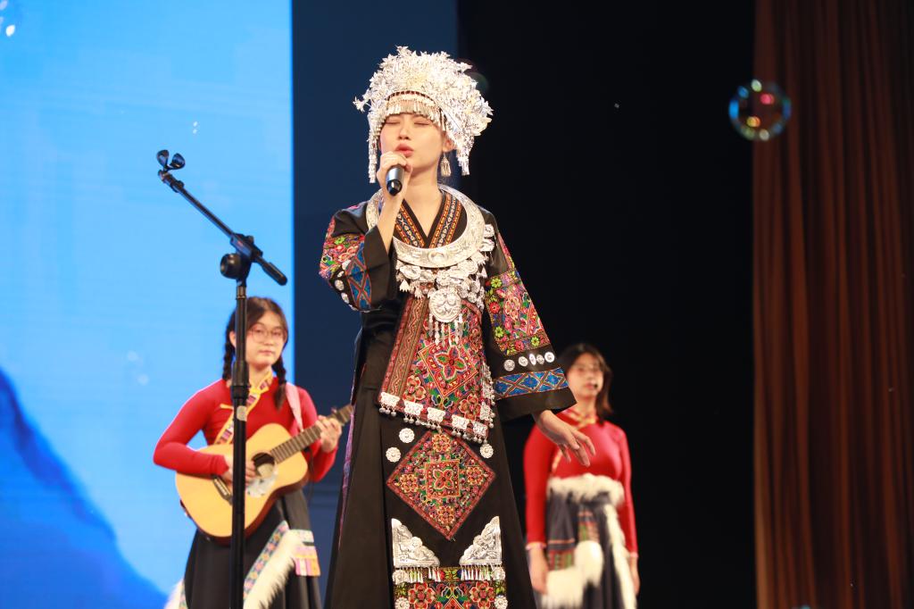晚会分为“青葱岁月 记忆飞扬 ”,“感恩相遇 筑梦有你”,“心怀炽热 扬帆起航”和“乘风破浪 未来可期”四个篇章。开场舞《shhh》拉开晚会序幕,精彩舞蹈唤起台下阵阵欢呼喝彩。钢琴合奏《Golden Hour+匆匆那年》起承转合,琴声宛转悠扬,如梦似幻。歌曲《永不失联的爱》和《多远都要在一起》如潺潺溪流,流进了每位同学的心里,赢得满堂喝彩。绘本剧《胖国王与瘦皇后》带来阵阵欢声笑语,舞台剧《故乡行舟》美轮美奂,弘扬了我国传统的汉服文化。舞蹈《中国妈妈》和合唱《这世界有那么多人》充分展现了我校21级学生的舞蹈功力和歌唱魅力,不禁使人潸然泪下。学大161冯琰学长的《何以为家》和吉他社《不要怕》更是将本次晚会推向高潮,不同风格的演唱在此碰撞,谱写了现代又充满民族特色的青春歌谣。23级同学的舞蹈串烧更是活力四射,处处彰显青春本色。晚会在学生会带来的舞蹈《重返快乐星球》的炽热情感和动感舞姿中缓缓落下帷幕,师生们纷纷合影留念,为此次迎新晚会画上圆满的句号。
