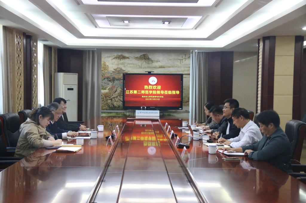 10月23日下午,江苏省第二师范学院党委书记王鲁沛,党委副书记、副校长刘继红,发展处副处长丁媛一行来我校开展校际交流活动。常州市教育局副局长王华刚,我校党委书记、校长肖加平,副校长魏霞、杨丽萍参加了交流活动。
