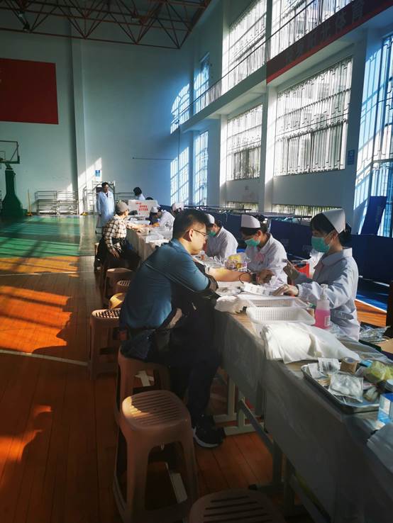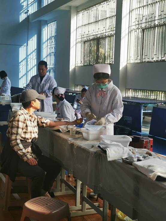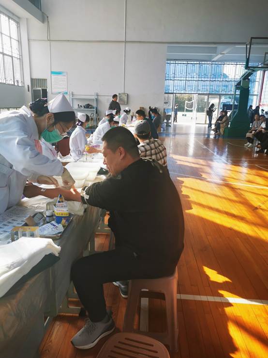在现场,老师们认真有序填写《无偿献血登记表》、体检、抽血化验、献血,所有流程都在医护工作人员的指导要求下井然有序地进行。教师们用自己的实际行动,在校园传递了积极向上、关爱他人的正能量,言传身教展示出了人民教师的优良师德和高尚情操。