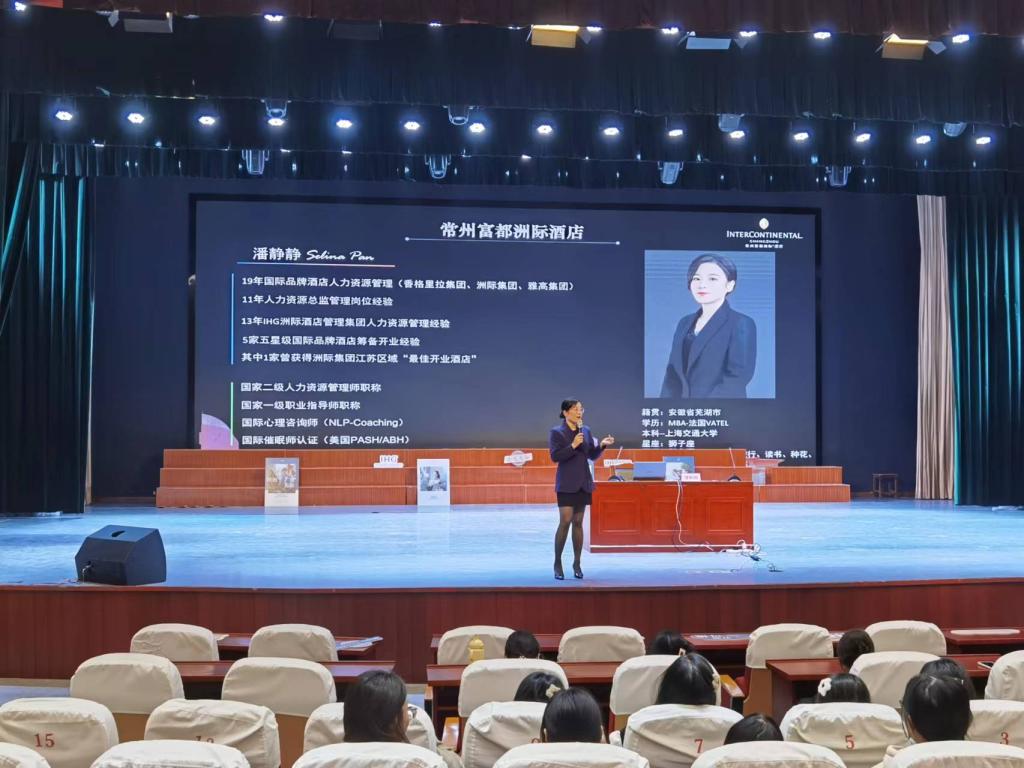 11月8日,现代服务专业部所有学生集中在仁艺楼演播厅,由常州富都洲际酒店的人力资源总监潘静静为同学们做了职业生涯发展专题讲座。