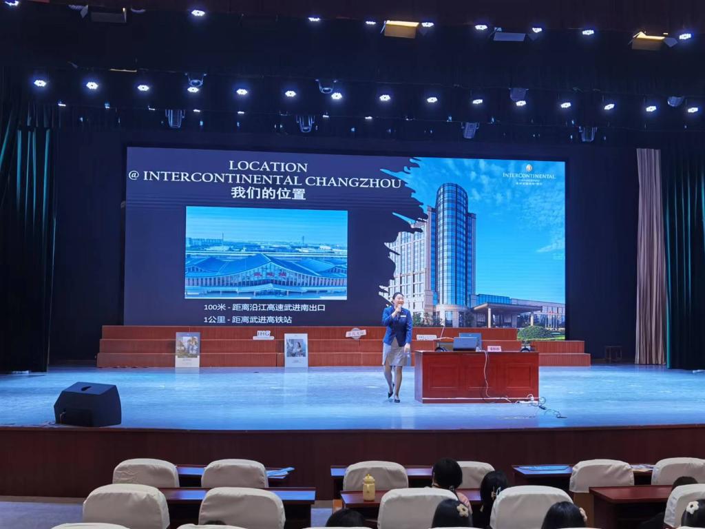 最后,培训部副经理佟芝葳给同学们介绍了常州富都洲际酒店的整体环境和各部门情况,让大家进一步了解了酒店业的最新业态,同学们都对酒店行业充满了期待。