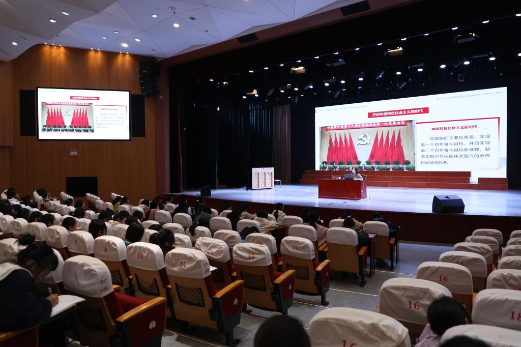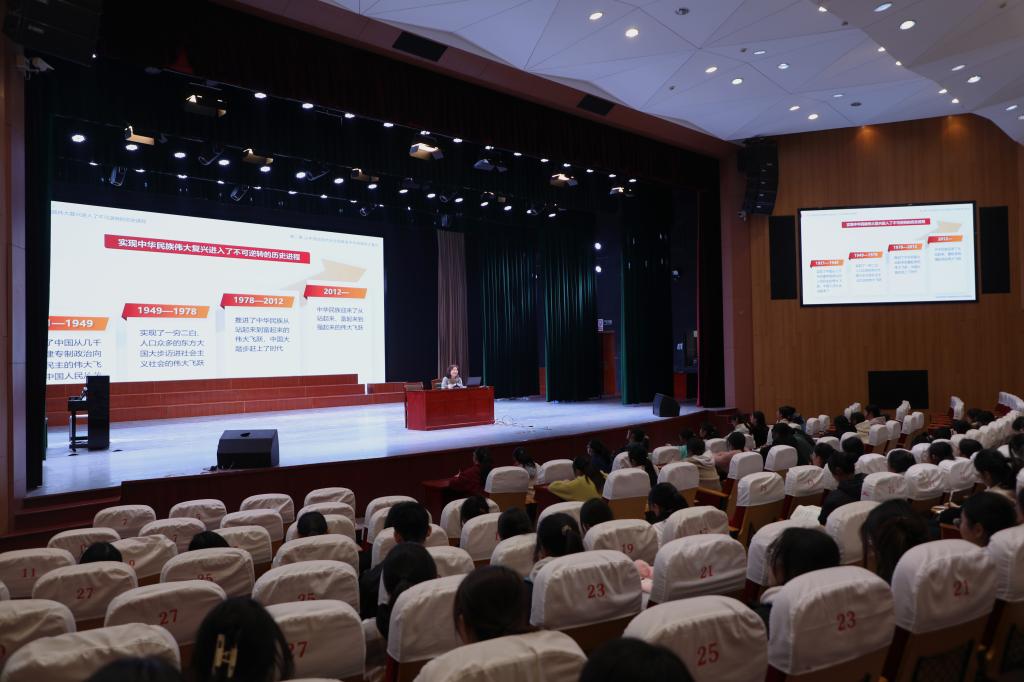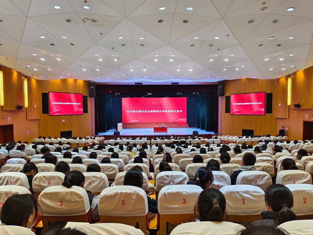 为进一步推动团员和青年主题教育走深走实,帮助我校青年学子学深悟透习近平新时代中国特色社会主义思想,结合我校团员发展工作安排,11月15日下午,2023年下半年入团积极分子第五期团课于校演播厅开课,校思政教研室王伟老师以《以中国式现代化全面推进中华民族伟大复兴》为题,面向我校350余名入团积极分子、各班团支部书记与团员代表进行专题授课。