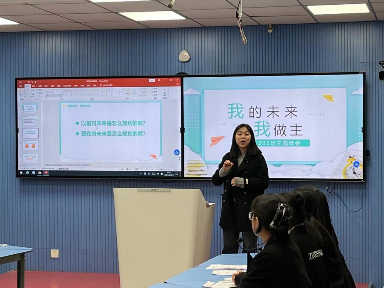 赵璐老师在主题班会《我的未来我做主——先升学还是先就业》展示中,就高年级学生目前即将面临的就业或升学的选择做了分析,结合当下现实环境,引导学生深入思考这一问题。班会围绕“先升学还是先就业”,从三个篇章进行分析,从第一篇章“回顾往昔畅想未来”引出班会主题,通过第二篇章“分析当下追逐未来”展开“先升学还是先就业”的激烈辩论,学生更加深入的了解自己的优势和价值观,增强自我认知。同时通过辩论,相互学习,提升思辨能力和团队合作能力。最后通过第三篇章“循循善诱奔向未来”,结合专业任课老师的视频等,引领学生选择更加适合自己的人生规划,创造更加美好的未来!