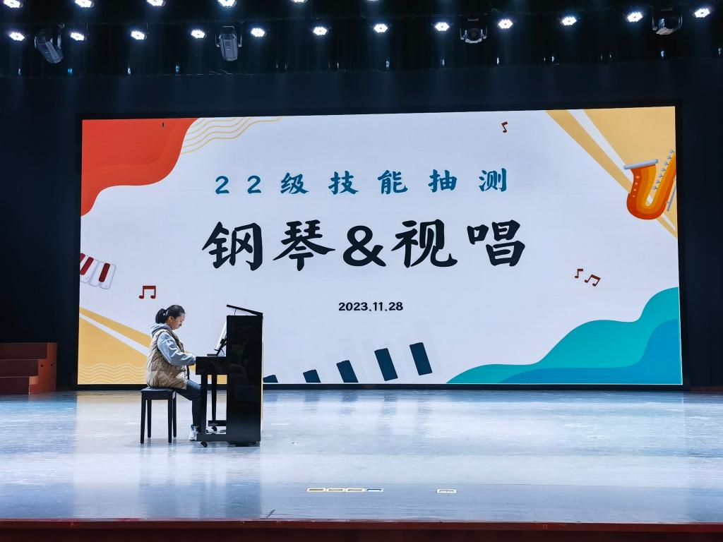 本次抽测一共分为四轮,采取评委老师现场抽测的方法,先规定抽测的曲目,再从每班中抽取人员。保证了抽查结果的公平、公正、客观。现场同学有的胸有成竹严阵以待、有的摩拳擦掌跃跃欲试。被抽测到的同学井然有序、严肃对待,尽自己所能做到了最好,为班级争光添彩。场下的同学们纷纷为场上的同学鼓掌加油,认真观赛。评委老师们专心致志检测同学们的技能水平,现场及时作出高质量的点评,使同学们知道自己努力的方向。