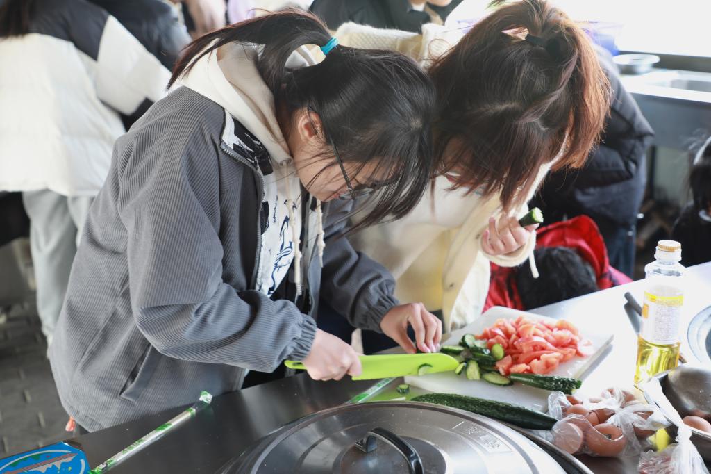 在教官的指导下,学生们割水稻、脱穗、筛粒、装袋称重,虽陌生困难,但新奇愉快。烹饪饭菜是一大挑战。领物、洗切菜、点燃灶膛、热油、翻炒,小组分工合作一步步完成,在困难面前勇敢尝试并相互鼓励。大家都觉得自己做的饭菜格外香。编草垫、搓草绳、做稻草人,在田野里跟着老爷爷一起学习技巧,大家学得认真、做得仔细,离开时甚至带着自己的“作品”回家。