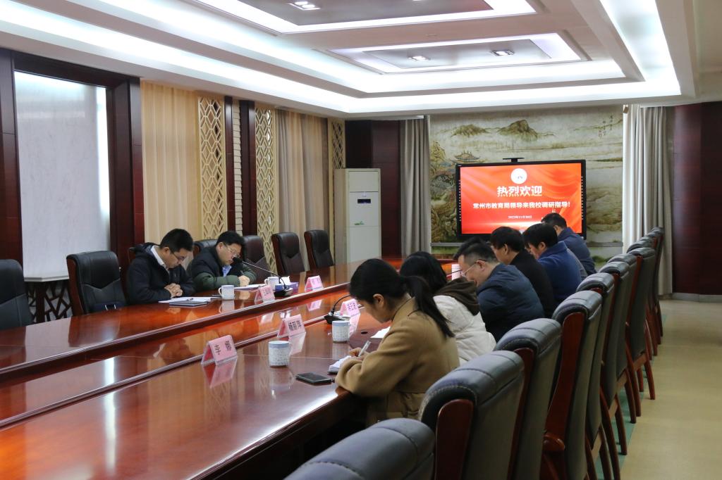 11月30日下午,常州市教育局副局长王华刚、高职处副处长杨欢来校调研指导,校领导班子全体成员参加了调研会议。