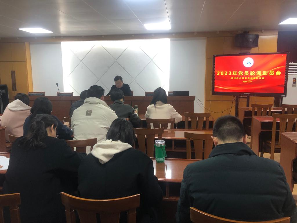 为全面提升党员政治素养和能力水平,教育引导全体党员深入学习领会习近平总书记在学习贯彻习近平新时代中国特色社会主义思想主题教育工作会议上的重要讲话精神,推动立德树人根本任务走深走实,根据市委教育工委的部署和安排,12月14日下午,我校在仁和楼第四会议室组织了轮训动员会,启动2023年党员轮训工作。校党委副书记、副校长蒋云波同志主持会议并作动员讲话。全体参训党员参加了此次会议。