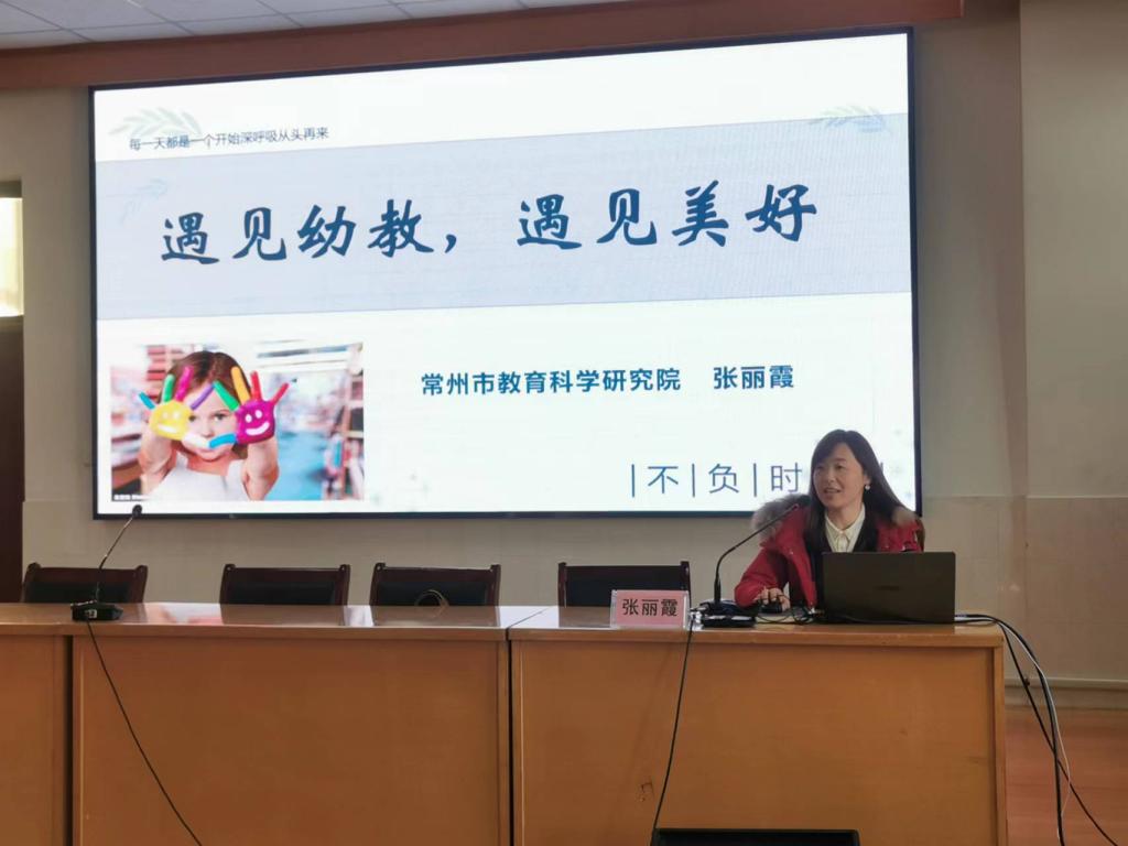 张丽霞老师代表导师团队讲话,她表示,导师们会充分利用资源,积极搭建平台渠道,为同学们提供全方位帮助,并且将持续密切关注同学们的进步与发展。随后,张老师以“遇见幼教,遇见美好”为主展开讲座。张老师结合多年教育教学经验,从专业发展、专业知识掌握、专业能力培养、就业方向等几个方面,为同学们深入浅出地分析了学前教育专业的发展、需求与现状,使同学们对所学专业有了更进一步的认识。她希望大家摆正心态、立足当下、放眼未来、苦练本领,为走出校园、走上岗位,成为一名“四有好老师”做好准备。