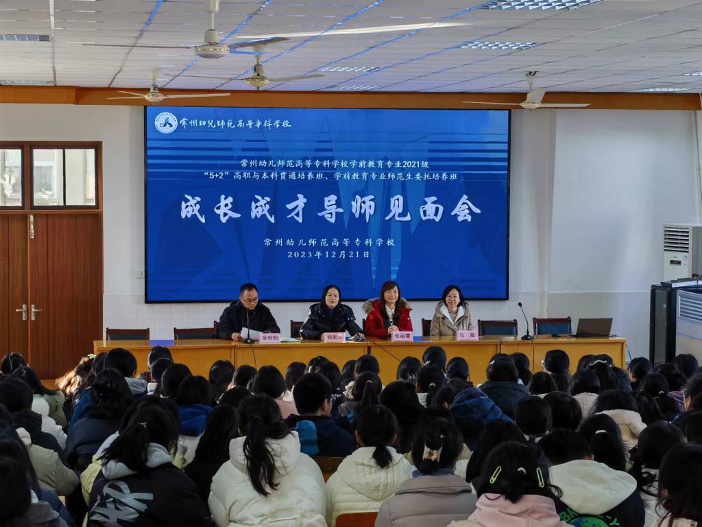 为更好的帮助同学们的专业成长和发展,根据学前教育专业人才培养方案和学校的工作安排,12月21日下午,师范教育专业部在5503组织开展了“5+2”高职与本科贯通培养班和学前教育专业师范生委托培养班“成长成才”导师见面会。市教育科学研究院教研员张丽霞、副校长杨丽萍、教务处副处长马辉出席了本次会议,学前2102等七个班的班主任和300余名学生参加会议。会议由师范教育专业部副主任吴盼盼主持。
