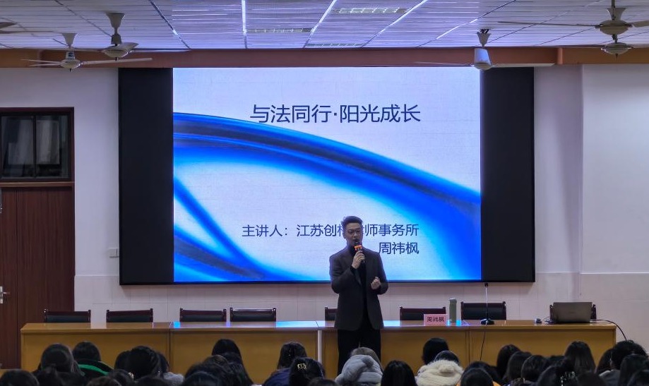 之后,江苏创格律师事务所职业律师周祎枫为全体同学作题为《与法同行 阳光成长》的讲座。周祎枫律师系我校2012级学前教育专业学生,是我校优秀毕业生代表。周律师立足学生专业实际,以幼儿园的安全管理活动为切入点,分析幼儿受伤的主要原因,强调幼儿安全问题的重要性。随后,周律师结合实际案例,以幽默风趣的方式,深入浅出地分析了法律与幼教行业的关系,勉励同学们在日后在幼儿教育工作知悉基本法律义务,让法律为专业发展保驾护航。接着,周律师以自身经手的民事纠纷典型案例为例,向同学们科普了经济纠纷的法律问题,进一步提高了同学们遵法、学法、守法、用法的意识和能力。