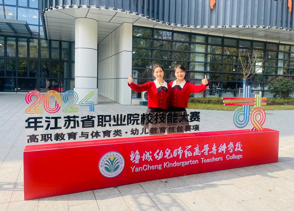 1月10至12日,2024年江苏省职业院校技能大赛高职组幼儿教育技能项目在盐城幼儿师范高等专科学校正式展开,我校由查琳菲、李思瑶两人组成参赛队参赛,副校长(兼师范教育专业部主任)李娜和葛娴老师全程陪同。