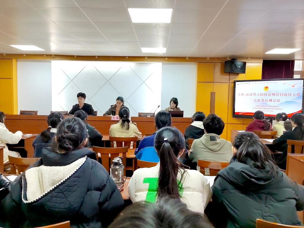 清明祭英烈,青年强信念。3月18日-4月3日,武进烈士陵园清明祭扫接待工作就要正式开始。为充分做好前期各项准备工作,提高志愿者队伍的业务水平,助力此项工作顺利开展,3月13日下午,武进烈士陵园管理中心副主任万璐老师来到我校,为志愿者们作清明祭扫接待工作专题培训。培训会由校团委鲁峥主持,校学生工作处处长王蕾出席并讲话。