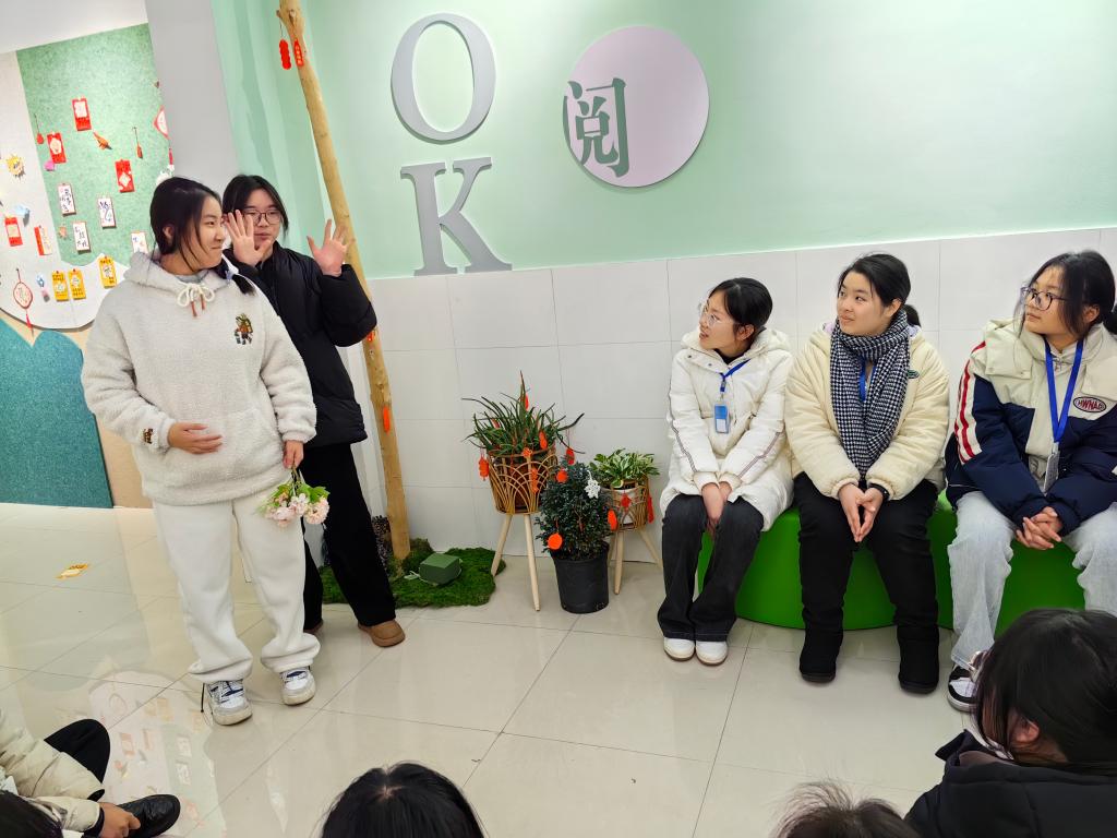 为切实加强学校心理健康教育工作,帮助学生心理委员掌握心理健康知识和技能,树立自助互助求助意识,充分发挥朋辈心理互助和桥梁纽带作用,我校心理咨询室于12月28日召开了全校班级心理委员专项培训活动,打通服务学生身心健康的“最后一米”。李娜副校长、学工处高柳莺副处长、心理咨询室王宇慧、申宏浩和储淑雅老师共同参加,带领全体心理委员在学校“一站式”社区学生活动室“有友屋”开展活动。