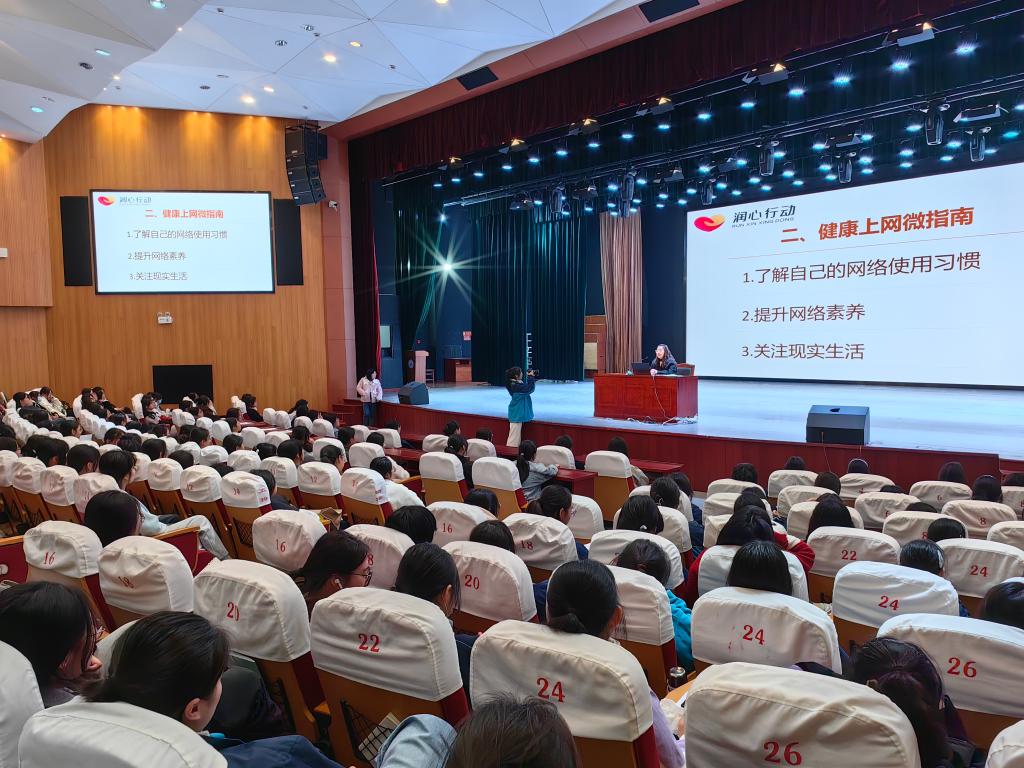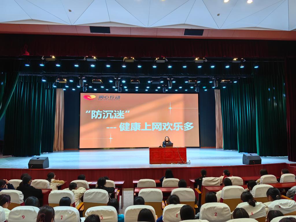 为了倡导学生依法文明上网、提升网络素养,营造健康文明的网络环境,助力学生培养积极的心理品质,3月25日下午,学工处携校心理咨询室在仁艺楼演播厅主题心理健康课:防沉迷——健康上网欢乐多。活动由学工处副处长高柳莺主持,校心理咨询室王宇慧老师主讲,储淑雅老师协调,五年制23级全体学生参加。