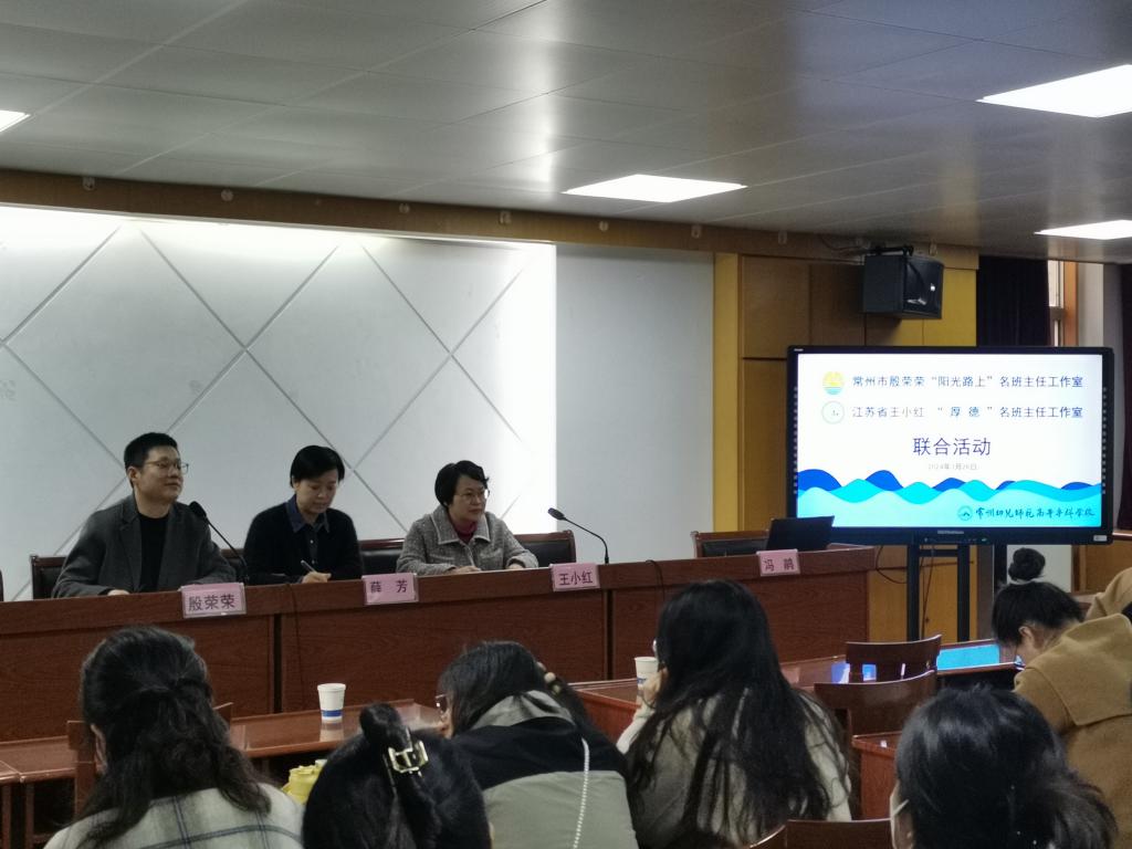 3月26日下午,常州市殷荣荣名班主任工作室、江苏省王小红名班主任工作室在我校举行联合活动。常州市高级职业技术学校、常州刘国钧高等职业技术学校、江苏城乡建设职业学院和我校学工部门相关领导出席活动,工作室全体成员及我校部分班主任、新教师参加了活动。