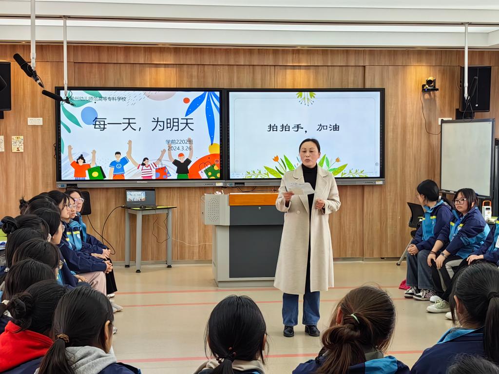工作室成员钱丽萍和冯鹃老师分别以《每一天,为明天》和《责任·奉献》为主题进行了班会课展示。钱丽萍老师带领学生从“回首过去”“珍惜当下”“展望未来”三个模块,展示了学前2202班的学生风貌,从初入常幼的懵懂、迷茫,到现在的渐入佳境,同学们逐步褪去了青涩,对学校、专业有了深入的了解,对班级有了归属感和认同感,对今后的学习、生活也有了一定的规划。冯鹃老师以培养学生责任与奉献意识为目标,带领学前2207班级的全体同学从“责任”“奉献”“榜样”三个篇章入手,引导大家结合专业要求和职业发展加深对责任和奉献的理解,取得了良好的教育效果。