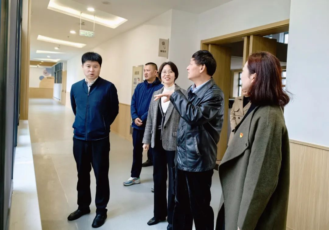 在遥观中心幼儿园,我校一行与遥观镇党委书记王伟强、副镇长张波、行政审批局副局长吴晓英一起深入教室、活动室和餐厅等场所,实地查看了幼儿园的办学条件和教育教学环境,听取了幼儿园园长熊志熠的园所情况汇报,了解了幼儿园的教育理念、师资力量、课程设置以及幼儿表现等方面的情况。