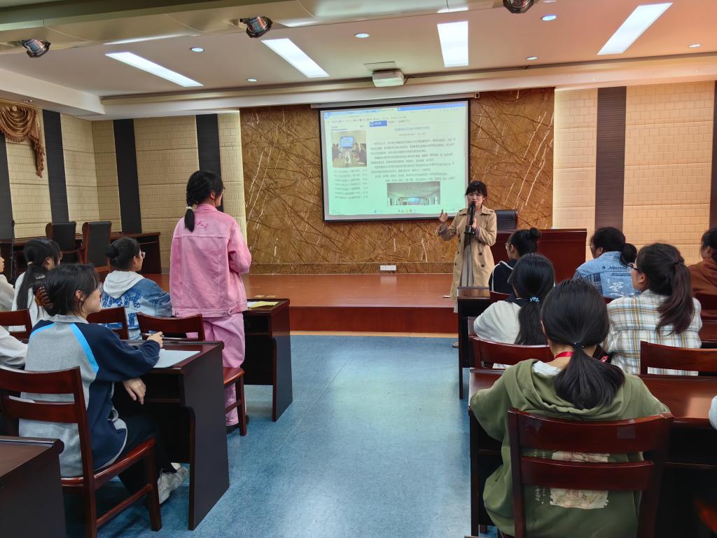 孟晨迪老师结合实例,以简单易懂的语言详细阐述了新闻要素、新闻构成、主体部分的撰写、规范和要求等内容,以图片的形式直观展示并介绍了新闻拍摄的要点。她设计了投票环节,了解同学们的实际情况,提出针对性建议,鼓励同学们利用各类活动机会,参与新闻稿的撰写和修改,将所学应用于实践,切实提升新闻素养。同学们认真聆听,积极参与,反响热烈。