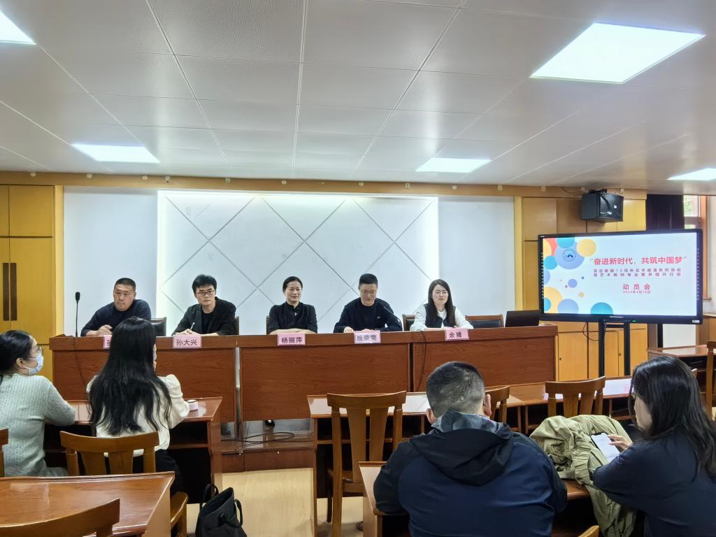 4月16日下午,展演动员会议在校第四会议室召开。校党委委员、副校长杨丽萍,第二、三、四党支部负责人殷荣荣、孙鹏举、孙大兴,第二党支部宣传委员余嫚以及全体艺术教师参加会议,殷书记主持会议。