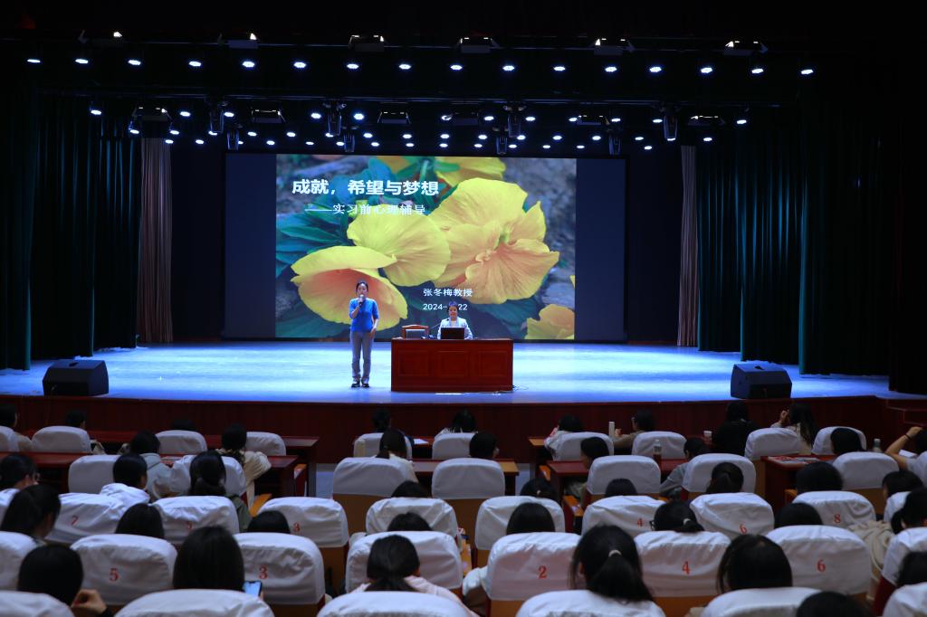 为帮助我校师生提升心理健康素养,增强教师心理咨询技能,缓解实习学生的焦虑情绪,帮助他们做好实习期心理建设和学习生活规划,进一步提升其社会适应能力,4月22日下午,我校学工处邀请江苏理工学院张冬梅教授在心理咨询室举行咨询技术交流会,在仁艺楼演播厅开设心理健康专题讲座《成就、希望与梦想——实习前心理辅导》。讲座由学工处副处长高柳莺主持,心理咨询室黄燕萍、王宇慧、储淑雅和申宏浩老师出席,20级全体学生听取了讲座。
