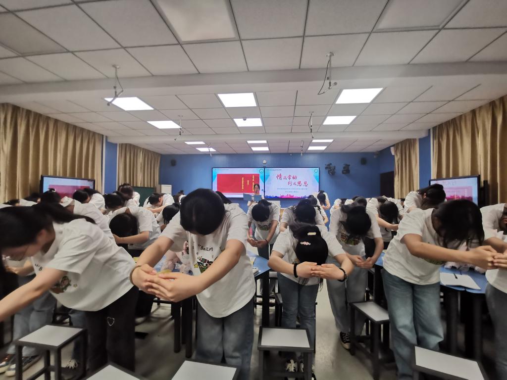 程维老师围绕“情满常幼 行远思恩”主题,带领同学们从“回首足迹感念时光——情满常幼感受温暖——行远思恩感怀恩师——远行寄情感恩有你”四个模块,开展了观看视频、分享感受、诗朗诵《感谢您,老师》、情景剧《非常面试》等活动,由浅入深地引导同学们将感恩之心、感恩之情融入以后的工作和生活中。
