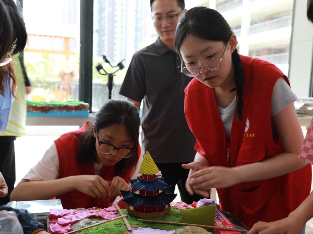 5月29日下午,校团委陈海粟老师带队我校12名“小青柚”志愿者参与线下现场活动。来自武进区星河实验小学的24名同学和我校青年志愿者们在地形地貌上共同完成大型“绿色社区”沙盘模型的制作。现场人员分为四组,利用绿色建筑手法原理,灵活运用材料、颜色和布局等要素,进行四个“绿色社区”小沙盘模型的制作。各小组之间相互配合,沟通衔接,以保证大沙盘模型的协调和完整。活动过程中,志愿者与小朋友们互动密切、相处和睦,让本次活动充满了欢声笑语与美好回忆,圆满完成了沙盘建构挑战。