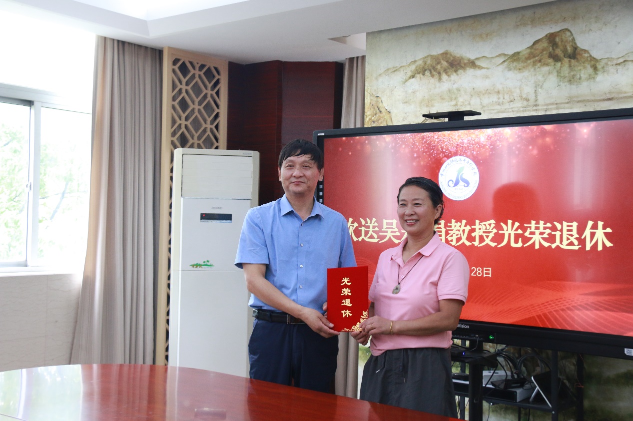 6月28日上午,我校第二会议室洋溢着温情与敬意,隆重举办了吴彩娟教授的退休欢送会。校领导肖加平、魏霞、相关部门负责人以及相关教研室的同志参加了会议。欢送会由工会主席魏霞副校长主持。