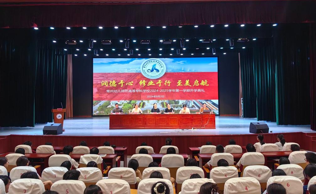 元气满满启新篇,前程朤朤向未来。9月2日下午,我校2024-2025学年第一学期开学典礼在仁艺楼演播厅顺利举行。副校长杨丽萍、李娜,教务处处长顾静、学工处处长王蕾、现代服务专业部主任吴科岭、师范教育专业部副主任吴盼盼出席典礼。典礼由王蕾处长主持,全校学生通过现场+直播的方式观看。