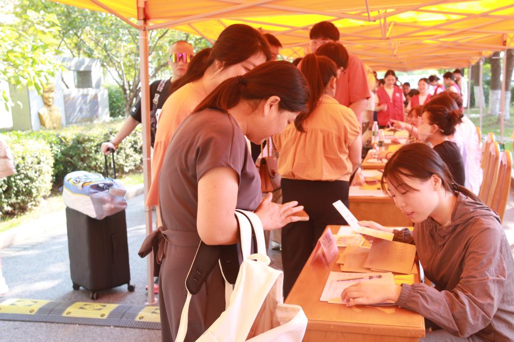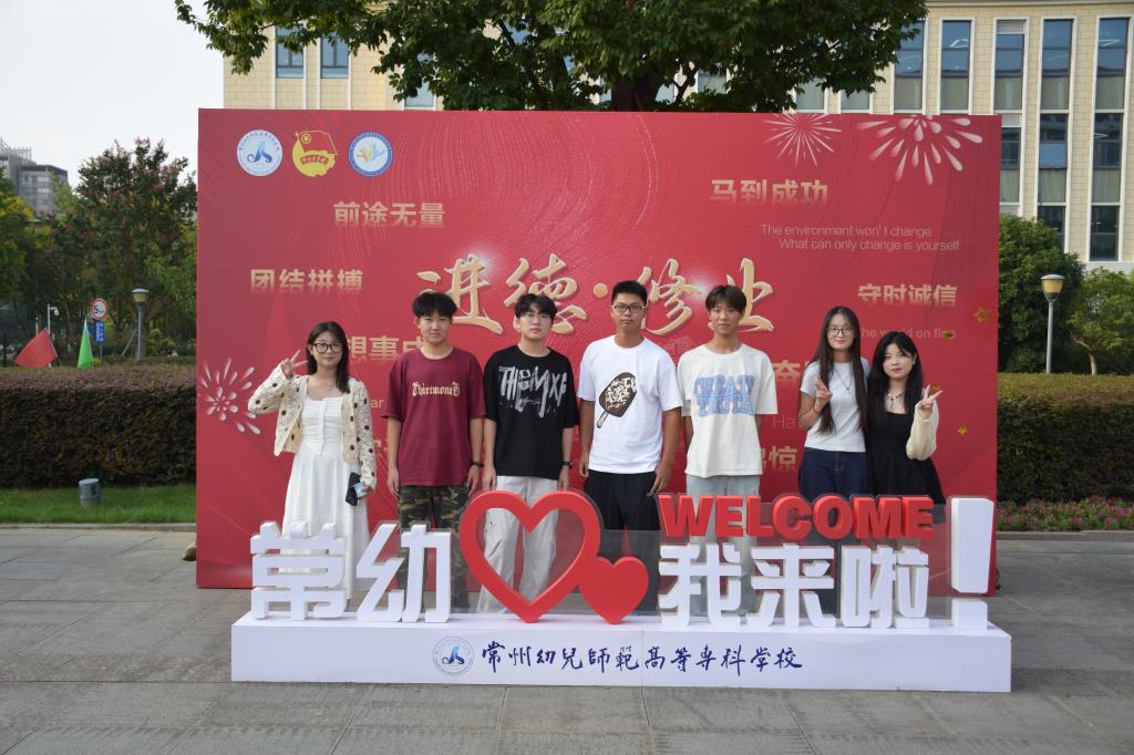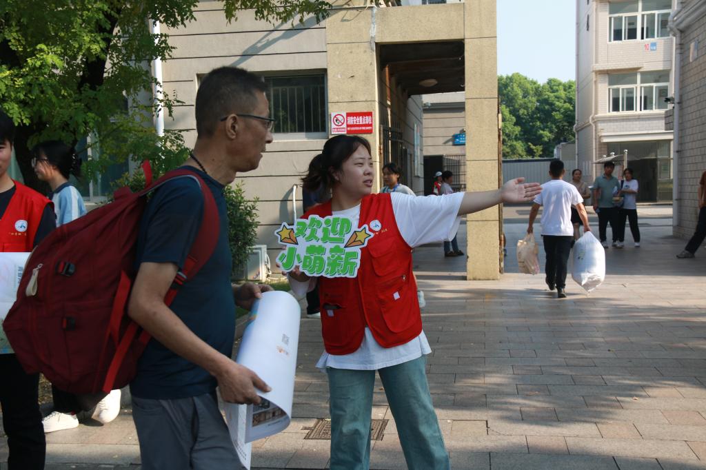 迎新工作花样整活,创意十足,仁和广场矗立的展板上,“进德修业”的字样引人注目;鹤琴广场前的阶梯上,逐级而上的名言催人奋进;名人大道拉满横幅,迎新之意、关切之情溢满校园;穿行在校园中的红马甲用青春与汗水传递“常幼专温度”。