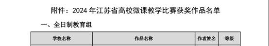 近日,2024年江苏省高校微课教学比赛获奖名单正式公布,我校吴月娥老师荣获一等奖,黄丽红老师、王梨老师荣获二等奖,王莹莹老师荣获三等奖。