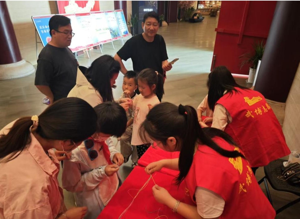 端午期间,青年志愿者们走进武进博物馆,通过“游园会”的形式,带领小朋友和家长共同参与包粽子、编彩绳、做香囊等活动。通过亲身实践,孩子们不仅学到了传统节日的文化内涵,还感受到动手制作带来的乐趣。龙舟造型的香囊、五色彩绳的蛋兜,承载着古老的传统习俗,孩子们在手工制作的过程中加深了对端午文化的理解。