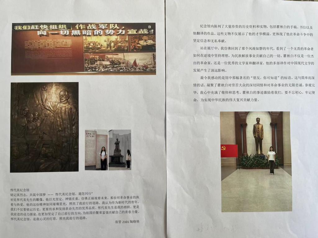 本次活动共分两个部分,艺术设计专业开展“红色记忆”创意海报设计比赛,旅游管理专业开展“红色足迹”旅游打卡创意设计比赛,两项赛事紧密联系学生们的专长与日常生活,激发了他们的创新思维和对国家的深厚情感。众多学子热情投入,全力以赴地创作出一件件精品,每一份作品都凝聚了他们的心血和对祖国的挚爱之情。经过教师团队严谨细致的评审过程,各个奖项尘埃落定,优秀之作脱颖而出。