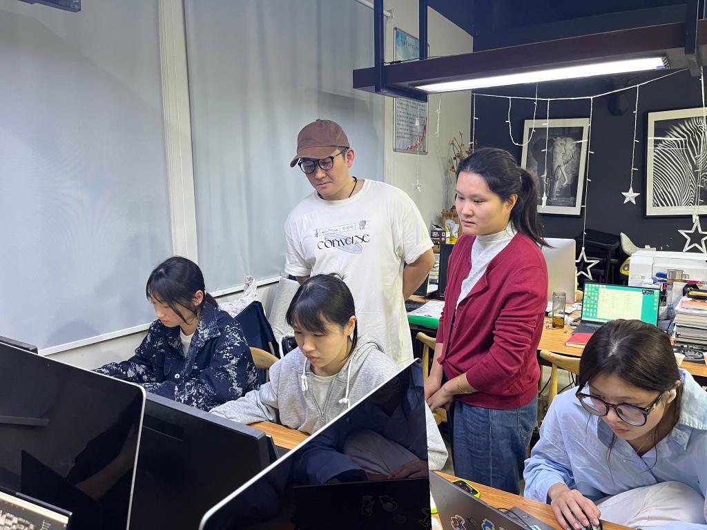 王经理还走进我校影视工作室 ,对同学们的实操环节展开专业指导。他针对每位学生的作品,给予了具体的建议与改进意见,包括色彩搭配、形状设计和材料选择等。通过深入交流,学生们收获了灵感,更加明确了自己的设计思维。