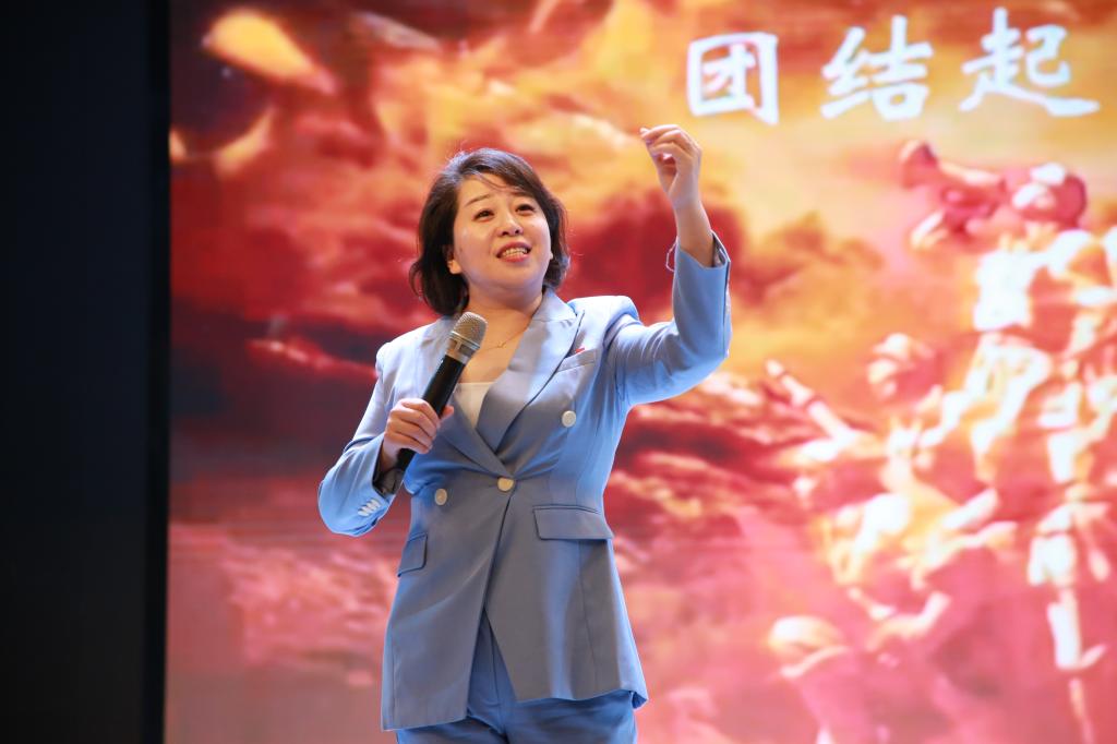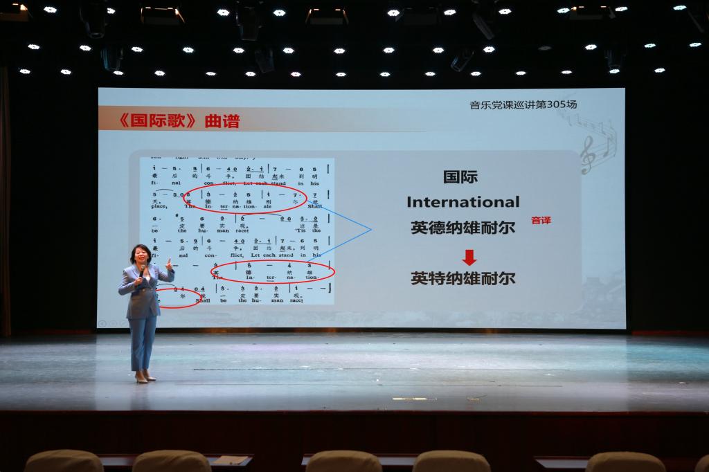 马凌教授通过以史串歌,以歌叙史的党课形式,将红色音乐与党史学习教育相融合,铿锵有力、催人奋进。在瞿秋白同志译配的《国际歌》激昂旋律的伴奏下,马凌教授自1920年的历史节点缓缓展开叙述,她详尽描绘了瞿秋白同志作为赴俄记者期间译配《国际歌》的时代背景、创作细节及其对革命事业的深远影响,提及了1923年瞿秋白同志创作的《赤潮曲》,他以崇高的共产主义信念和乐观主义精神号召大家继续战斗。在马凌教授的引领下,全体在场人员齐声诵读了这首跨越百年的《赤潮曲》歌词,场面庄重而豪迈。党课尾声,马凌教授以深情而温暖的嗓音,为大家献上了《领航》一曲,进一步升华了课堂氛围。通过这一连串红色歌曲的串联,师生们仿佛穿越时空,深切体会到了瞿秋白在黑暗年代中的呐喊与抗争,以及他为寻求真理、献身革命所展现出的英勇形象。大家深受瞿秋白崇高信念与乐观精神的感染,深刻领悟了共产党人引领中华民族从危难走向复兴的壮阔历程。