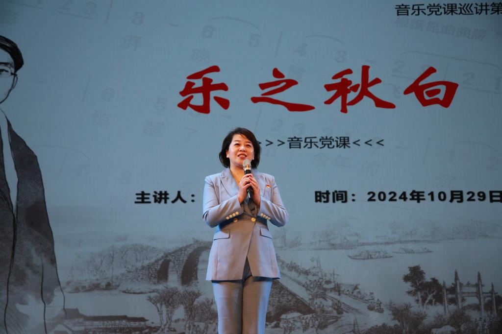 开班仪式结束后,常州市政协委员、江苏理工学院教授马凌以《音乐党课:乐之秋白》为题作了开班第一讲。