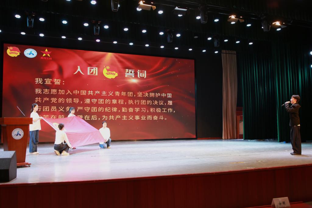 全体学员在领誓人韩永程的带领下,重温入团誓词,将仪式推向高潮。誓言铿锵有力,回荡在演播厅的每一个角落,彰显着青年学子对马克思主义的坚定信仰和对祖国的无限忠诚。
