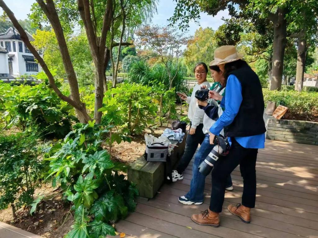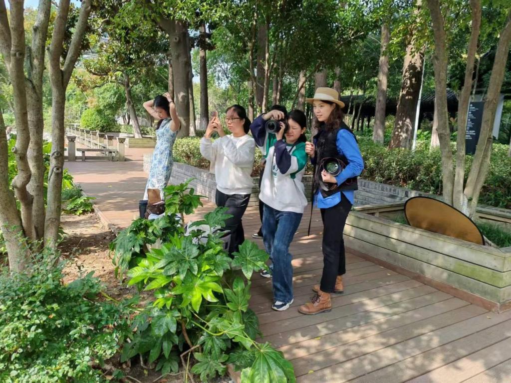 学生们分小组深入红梅公园的每个角落,镜头下秋叶纷飞,长者悠然散步,孩童欢笑嬉戏,每一帧都是大自然与人文的和谐共生。他们或蹲、或站、或仰望,用心捕捉每一个瞬间,用镜头诉说着对美的探索与感悟。光影交错间,一幅幅秋色与人物的写真跃然于眼前,展现了红梅公园的诗意与灵动。镜头不仅记录了自然之美,更记录了师生间的默契与交流。老师们悉心指导,学生们全情投入,形成了全新的“师生课堂”,彼此间的互动与启发,让采风活动充满了学术与情感的交融。