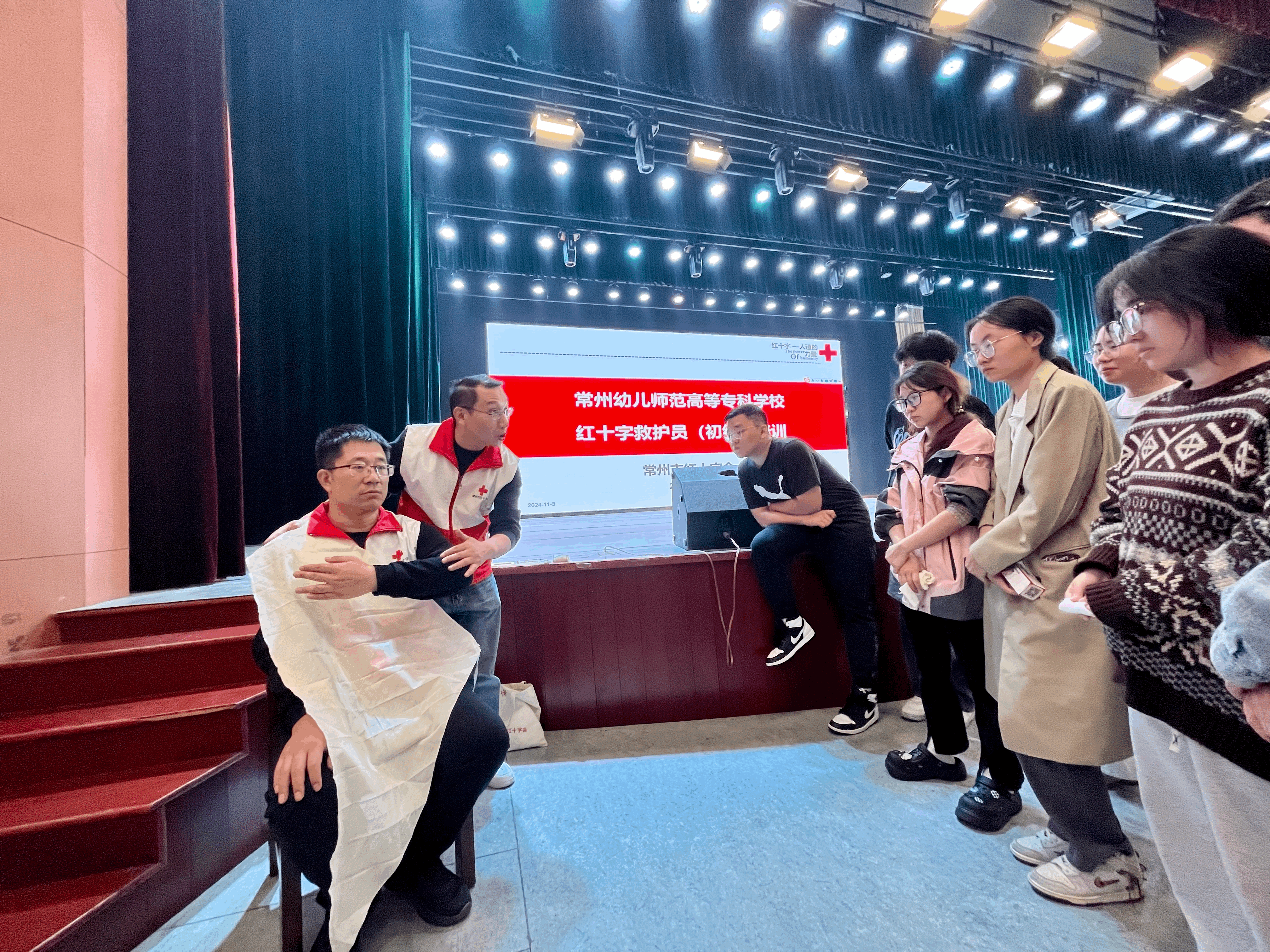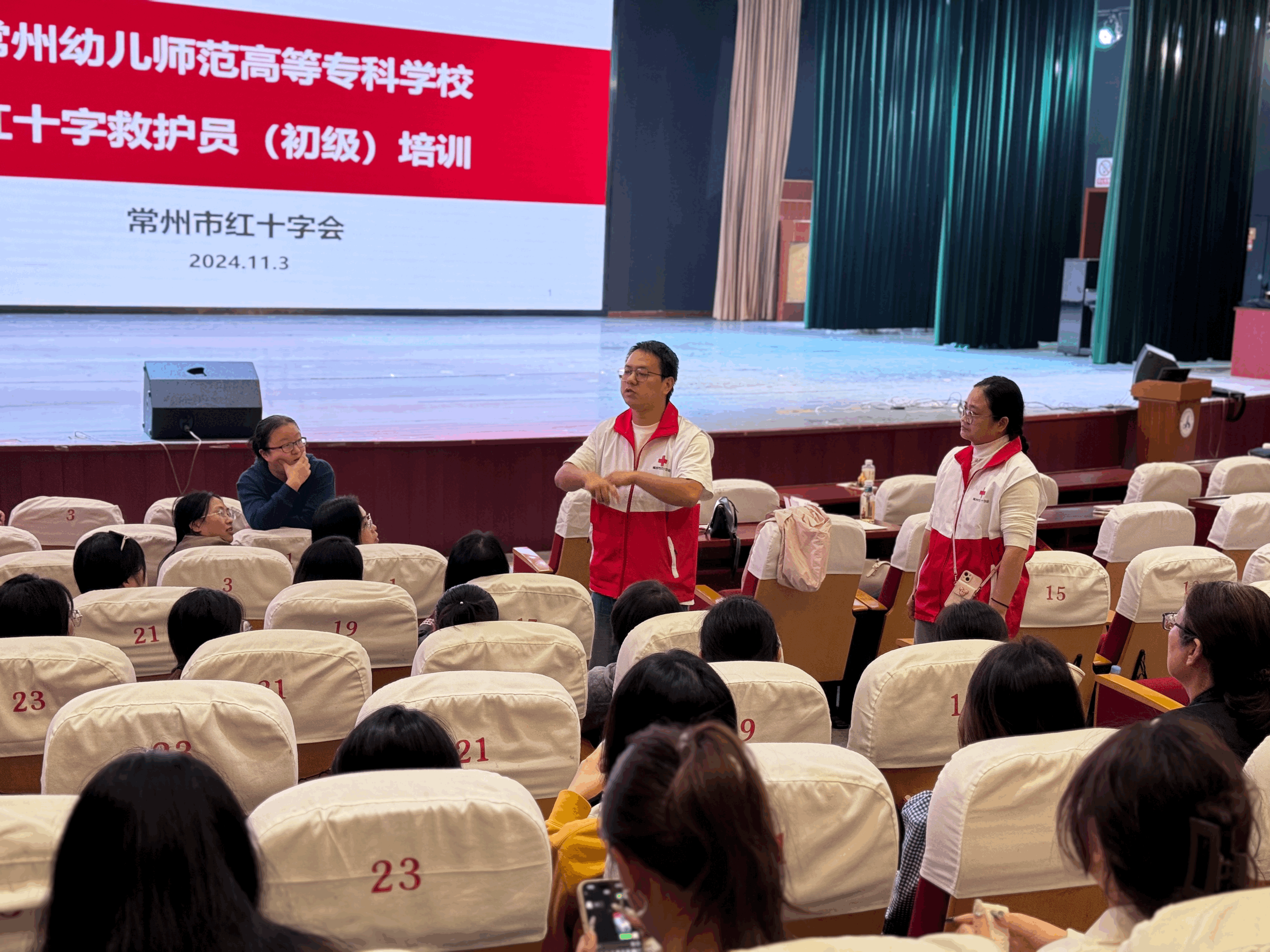 为普及应急救护知识、提升师生急救能力,11月3日下午,我校成功举办了2024年初级救护员培训活动,内容涵盖理论学习与实操训练。此次培训特别邀请了常州市红十字会专家黄飞担任主讲,市红十字会讲师团的8位资深讲师担任助教。活动得到了全校师生的广泛关注和积极参与,共有近100名师生学员参加培训。